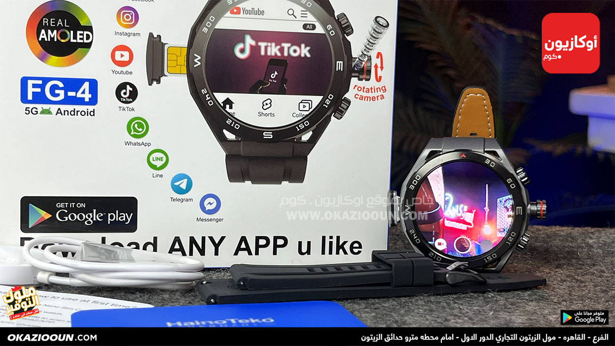 • نظام الأندرويد: تعمل بنظام Android 8.1 أو إصدار أحدث (مخصص للساعات الذكية)، مما يتيح لك تشغيل متجر Google Play وتحميل كافة التطبيقات (WhatsApp, YouTube, Facebook, TikTok).
