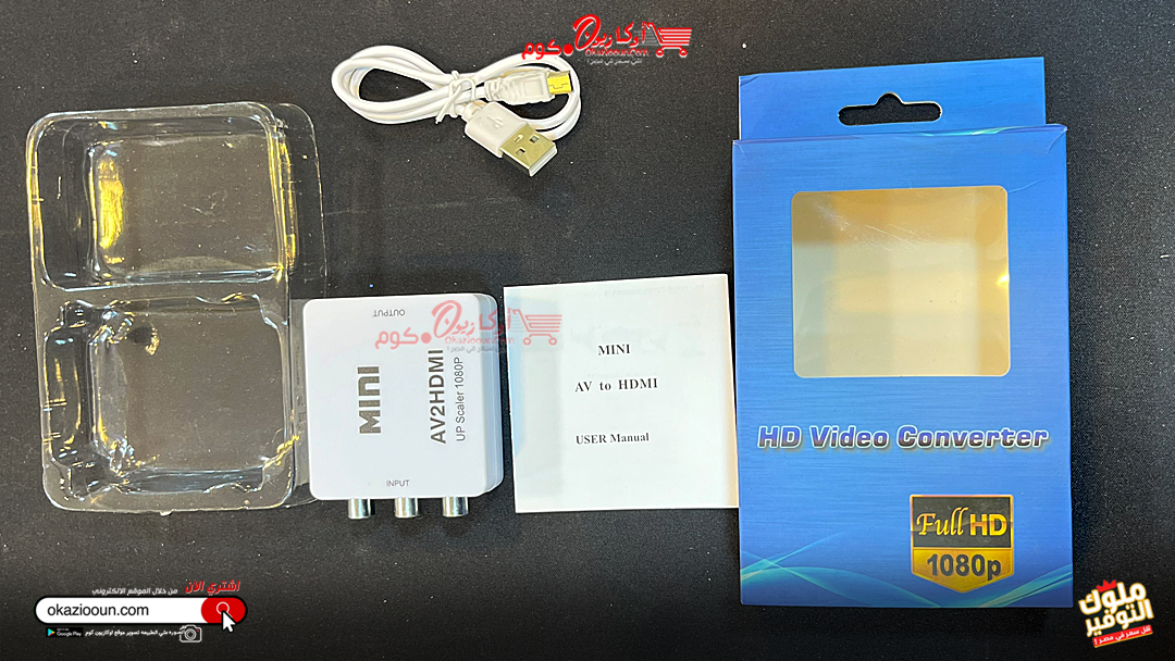 - صندوق محول فيديو عالي الدقة – يحول إشارات الفيديو والصوت عالية الدقة إلى سي في بي اس عادي، مما يسمح لك بمشاهدة الإلكترونيات القديمة بما في ذلك التلفزيون وفي اتش اس ودي في ار ودي في دي.